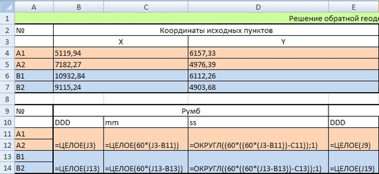 Writeln(t2,'Дирекционный угол и четверть для задания B:');