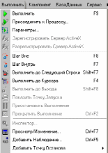 Интегрированная среда Delphi предоставляет пользователю несколько команд пошаговой отладки доступных в меню Выполнить (рисунок 4.4).