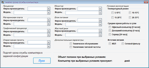Определение срока поломки компьютера чрезвычайно важная задача. Решив её можно прогнозировать расходы на замену вышедшего из строя оборудования, выбрать при покупке наиболее надёжный вариант комплектации компьютера, избежать проблем с выбором тех или иных комплектующих.