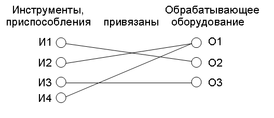 Каждый инструмент(приспособление) может привязывается только к одному обрабатывающему оборудованию, каждому оборудованию может быть привязано несколько инструментов(приспособлений), поэтому степень связи N:1. Класс принадлежности обеих сущностей – обязательный.