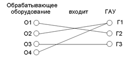 Каждое обрабатывающее оборудование может входить только в одно ГАУ, в каждое ГАУ может входить несколько оборудований, поэтому степень связи N:1. Класс принадлежности обеих сущностей – обязательный.