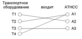 Каждое транспортное оборудование может входить только в одну АТНСС, в каждую АТНСС может входить несколько оборудований, поэтому степень связи N:1. Класс принадлежности обеих сущностей – обязательный.