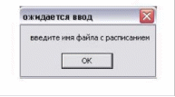 Далее необходимо ввести в окошко полное имя файла в котором находится расписание и нажать на клавишу “Установить расписание”. После чего будет происходить запуск программ по расписанию. Если имя не будет указано, то появится окошко: