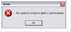 Если файл с расписанием записан не верно, то выдаётся сообщение: