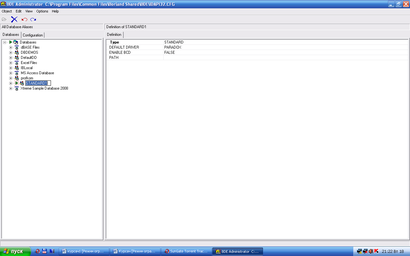 Перед началом работы с базой данных необходимо установить программу BDE Administrator (рис. 1) Эта утилита может устанавливаться как с Delphi так и без него. В этой программе необходимо создать псевдоним базы и указать её местоположение. Для этого заходим в меню Object и выбираем New. В появившемся окне New Database Alias выбираем Standard и нажимаем OK.
