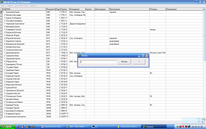 Добавление информации о студенте производится с помощью меню “Файл”- “Простой поиск”. В окне простого поиска (рис. 8) нужно вести ФИО студента и нажимать “Искать далее” пока нужный студент не будет найден. После того, как нужный студент найден, чтобы добавить ему информацию, нужно нажать кнопку “Добавить информацию”.