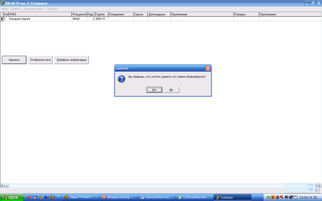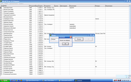 рис. 5 Окно ошибки, возникающее, если студент не был найден