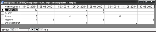 Рис.1.8 – Перекрестный запрос: Реализация лекарств по датам