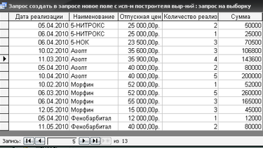 Рис.1.7 − Результат работы запроса с использованием построителя выражений и группировки данных