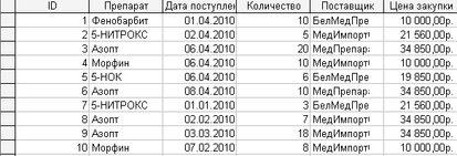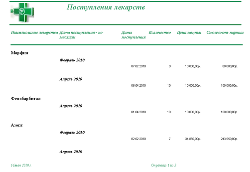 Рис. 1.20 – Фрагмент отчета «Поступление лекарственных средств»