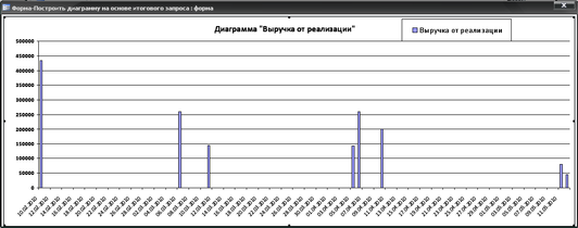 С формы «Аптека» также доступна форма «Выручка от реализации» (рис.1.17), которая в виде диаграммы выводит информацию о совокупном объеме выручки по датам.