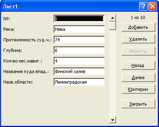 значениями первой записи, т.е. данными первой реки.