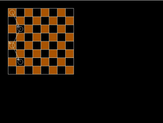 Написати програму, яка реалізує рух коня по всім 64 кліткам шахової дошки так, щоб він сходив на кожне поле по одному разу. Розробити алгоритм з відходами назад. Необхідно, щоб рух коня спостерігався під час роботи програми. На пройдених клітках шахової дошки записуються номери ходів.