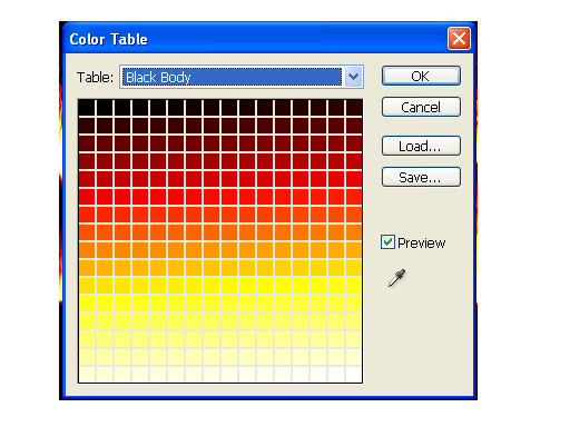 11. Перевести изображение в режим индексированных цветов: Image – Mode – Indexed Color. Затем Image – Mode – Color Table, Выбрать таблицу Black Body.