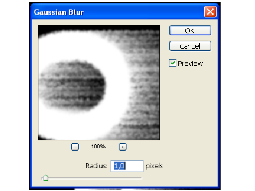 4. Размытие изображения. Воспользуйтесь фильтром Filter – Blur – Gaussian Blur. Радиус размытия зависит от размера изображения и выбранного шрифта. Чем больше буквы, тем большим должно быть значение радиуса.