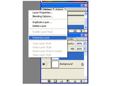 3. Щелкнуть правой кнопкой мыши в палитре Layers по слою с текстом и в раскрывшемся меню выбрать команду Rasterize Layer.