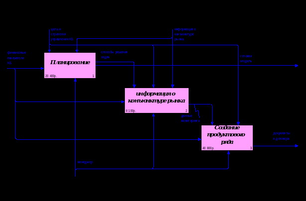 имеет номер А2 (рис.4) которая состоит из следующих работ: планирование, информация о конъюнктуре рынка, создание продуктового ряда.