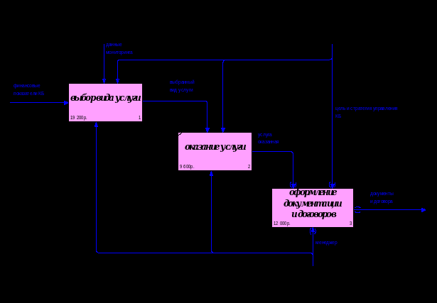 На диаграмме под номером А2.3.1.1 «Выбор вида услуги», (рис.8) показаны следующие виды работ: