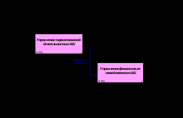 FEO диаграмма «Система управления менеджментом и маркетингом КБ» (рис. 11) показывает взаимодействие между работами на этой диаграмме без указания стрелок управления и входа.