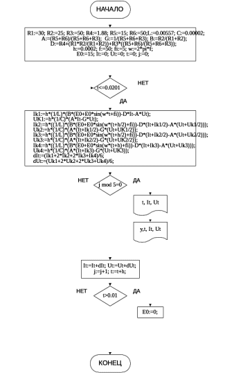 var R1,R2,R3,R4,R5,R6,L,C,E0,h,w,f,fi,t,A,B,D,G,