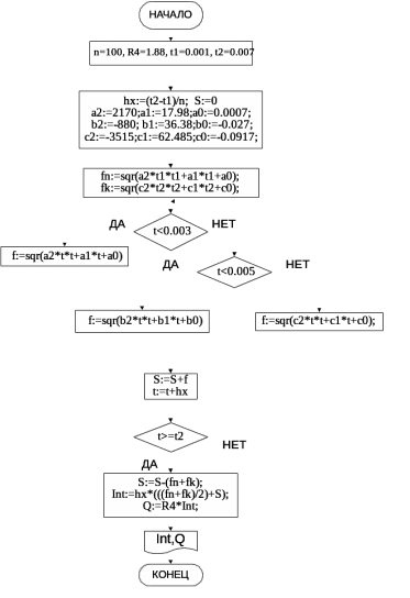 5.1 Блок-схема для нахождения выделившийся теплоты на резисторе R4