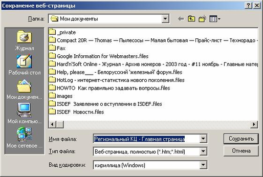 Когда путешествуете по web-страницам, то чаще всего, бывает некогда рассматривать или детально рассматривать имеющуюся на страницах информацию просто потому, что на это расходуется время, время, за которое платите. Из данной ситуации есть выход – это сохранение web-страниц на диске своего компьютера (Рис. 2.1.5.): Файл Сохранить как Папка: (проверьте или выберите папку) Введите имя файла Сохранить.
