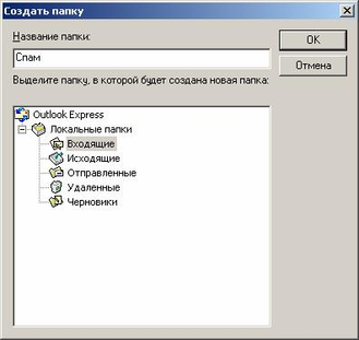 Рис. 2.2.2. Создание папки Спам в папке Входящие