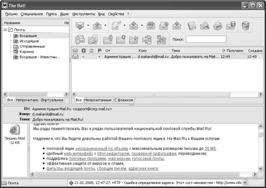 Рис. 2.4.1. Почтовая программа The Bat!