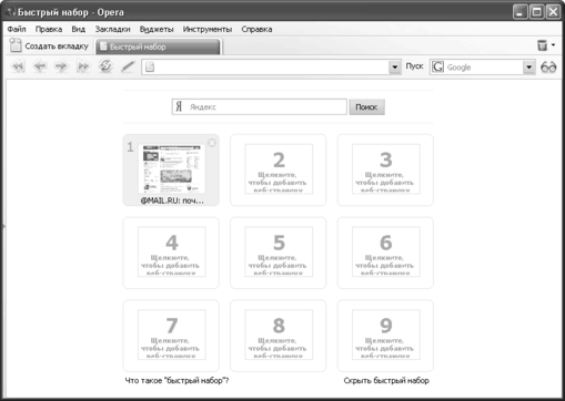 Рис. 2.3.2. Быстрый набор в браузере Opera