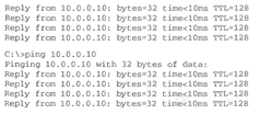Якщо робоча станція має проблеми з реєстрацією в домені, перш за все необхідно перевірити з’єднання. Для цього використовується утиліта ping-. Як показано на роздруківці нижче, спочатку виконується ping за іменем щоб перевірити дозвіл на ім’я. Вона вертається назад з відповіддю. Потім виконується ping за визначеною ІР-адресою, щоб перевірити чи є доступ до того ж місця призначення. В останню чергу посилається великий пакет для перевірки того, що пакети великих розмірів можуть дістатися до місця призначення. Утиліта рing за замовчуванням посилає дуже малий 32-бітний пакет, який може дістатися до місця призначення, в той час як великий за об’ємом трафік реєстрації може не пройти через маршрутизатор.