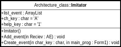 При нажатии клавиш на клавиатуре активизируется операция главной программы, которая вызывает операцию Create_event(…)класса Imitator. Если символ клавиши соответствует некоторому внешнему событию, то создается описатель события и помещается в список описателей главной программы.