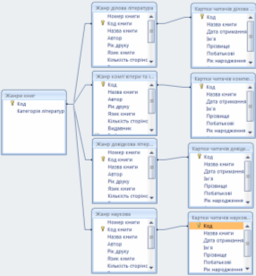 Рисунок 3.2 – ER-діаграма сутностей «Жанри літератури» і «Картки читачів»