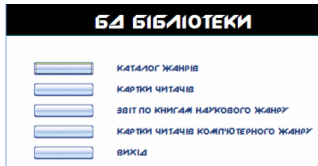 Ця форма є структурною для головної форми СУБД, яка зображена на рисунку 5.7.