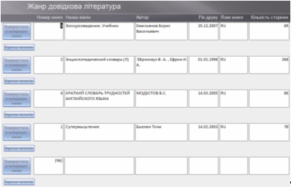 Форма 3 «Жанр довідкова література» зображена на рисунку 5.9.