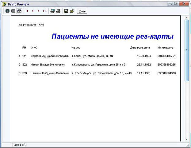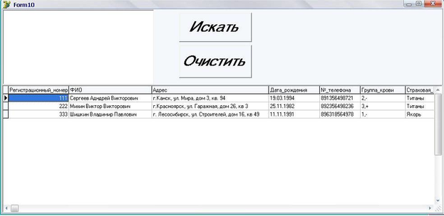 Рисунок 11Запрос: Поиск пациентов по страховой компании