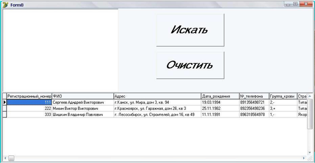Рисунок 10 - Запрос: Поиск пациентов по группе крови