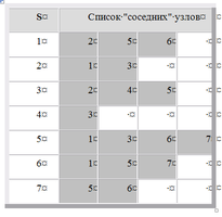 | Матрица смежности | |||||||||||||||||||||||||||||||||
