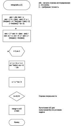Выберем для вычисления интеграла по заданию формулу Симпсона, т.к. подынтегральная функция, имеет нелинейный характер и метод Симпсона обеспечивает