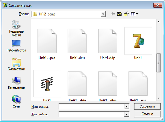 Процедура NSaveClick является обработчиком события onClick для объектa NSave. В ней тоже происходит сохранение содержимого массива AComp в файл на жестком диске, однако в этой процедуре не выполняется запуск диалога сохранения файла, а производится сохранение в текущий файл, имя которого занесено в FName.