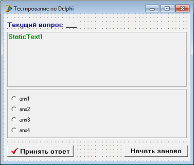 ans: array [0..3] of string – содержит 4 варианта ответов;