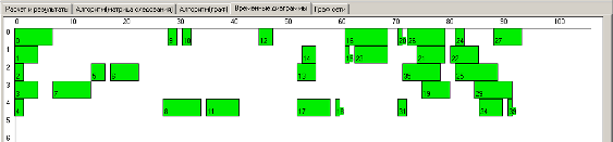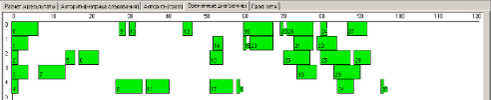 За счет того, что алгоритм при преобразовании был изменен, планировка вычислений изменилась и теперь длительность вычислений составляет 96 временных единиц. Это связано с тем, что при перепланировке были исключены из рассмотрения операторы, что повлияло на алгоритм планировки.