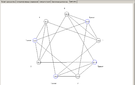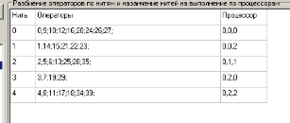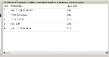 5. Вкладка распределения нитей по процессорам. Содержит описание структуры ВС с указанием, какой процессор выполняет какую нить, какой является транзитным и какой свободен. (рис.5)