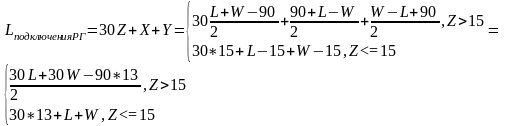 2) Оценка совокупной длины ЛС, необходимой для образования РГ и подключения ее к коммутатору ГП, производится по формуле (4).