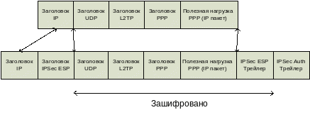 Инкапсуляция пакетов L2TP/IPSec выполняется в два этапа.