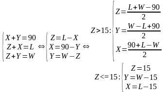 Рассмотрим нашу задачу для каждого здания. Как было показано выше, зона охвата описывается выражением (5), при условии, что W,L<=90 и W+L<=120. Площадь зоны охвата равна 4WL. Необходимо этими зонами охвата покрыть весь этаж здания, площадь которого для каждого здания определена выше.