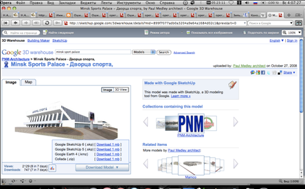 сформулировать запрос (“minsk sport palace”). В случае поиска модели конкретного объекта рационально воспользоваться подменю «Города в разработке».
