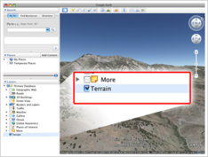 3. В Google Планета Земля переключитесь на трехмерный рельеф. Для этого нужно установить флажок "Рельеф" в списке слоев в левой части экрана.