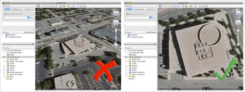 Таким образом в приложение Google Earth можно разместить модель неограниченной сложности. Выстроенное здание не заносится в базы данных и может быть просмотрено лишь на компьютере, на котором выполнялся экспорт. На модель, предназначенную для общественного пользования в приложении, накладываются некоторые ограничения, связанные с необходимым уменьшением сложности и веса модели.