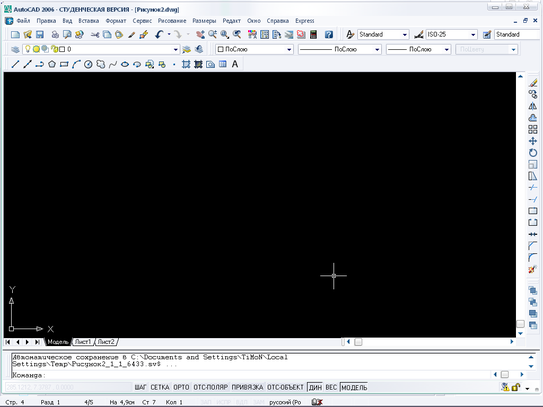 Графическое окно программы AutoCAD 2006 представляет собой: