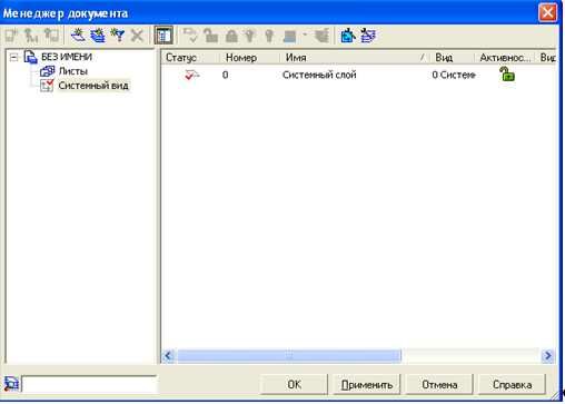 Мендежер документа предназначен для работы с объектами, составляющими стуруктуру документа: листами, видами и слоями. Основные действия, выполняемые с помощью Менеджера документа: